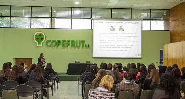 En el marco de la celebración del mes de la Mujer en Copefrut, Fundación Chile Unido fue invitada a fines de mayo a Curicó, para compartir con un grupo cercano a 80 mujeres su experiencia en la promoción de la Conciliación Familia y Trabajo y cómo contribuye al desarrollo y trayectoria de la mujer en la empresa.