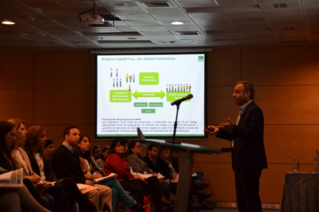 En su exposición, Andrés Herreros explicó el porqué y la importancia del manejo de los factores psicosociales en los lugares de trabajo, señalando que lo que busca este Protocolo es vigilar y fiscalizar las condiciones sanitarias y ambientales básicas de los lugares de trabajo, incluyendo factores como el impacto negativo del estrés, violencia y acoso laboral, y la tensión trabajo-familia. De ahí su importancia para los RR.HH., ya que son ellos principalmente los preocupados por la salud física y psicológica de los trabajadores